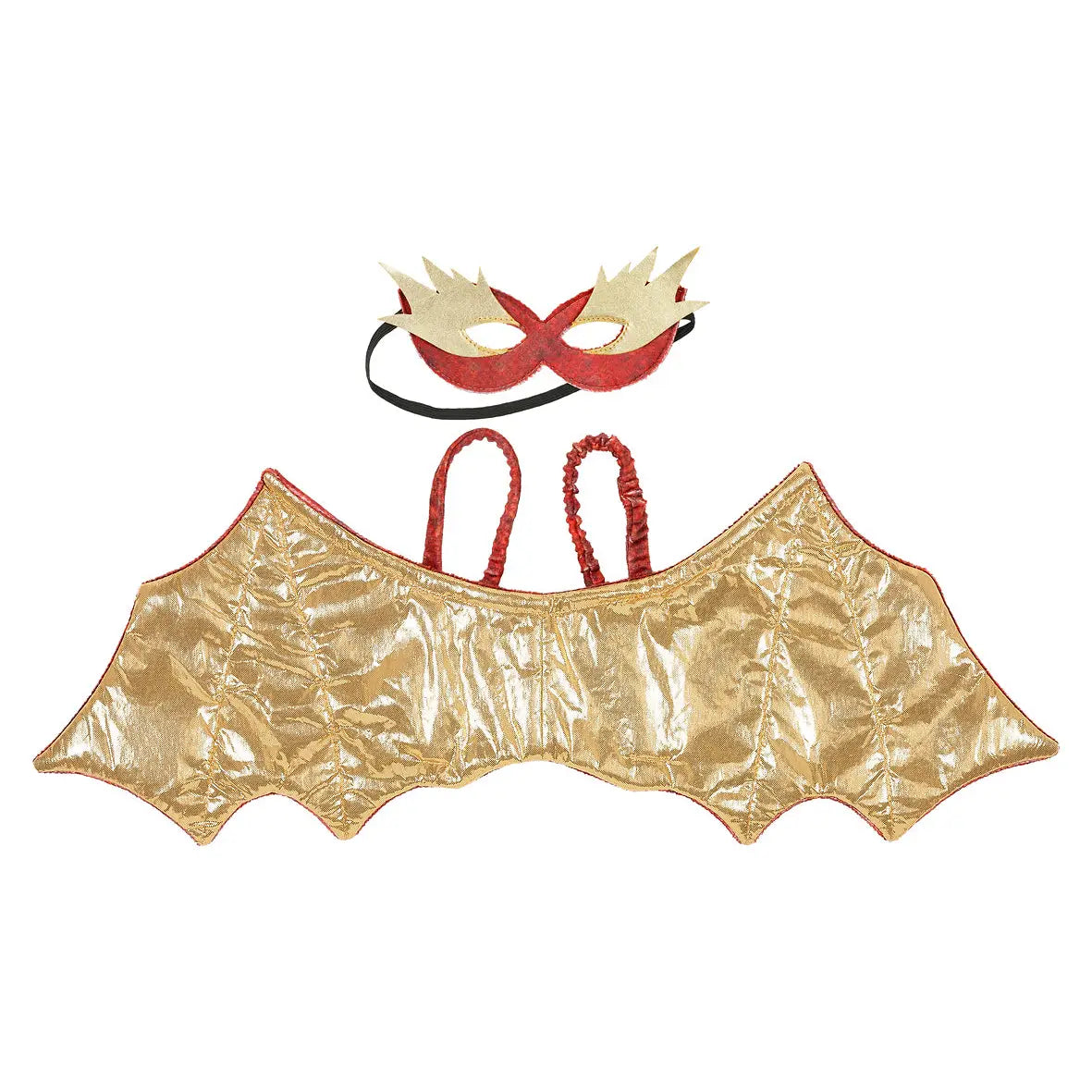 Red dragon wings + mask - Costume Accessory for Kids - Carnival & Festive Use (1 set) Transform into a fierce red dragon with this set of wings and mask! Dominate as the mythical creature of your dreams. Unleash your inner fire and soar to new heights (literally). A must-have for any bold and adventurous soul.
