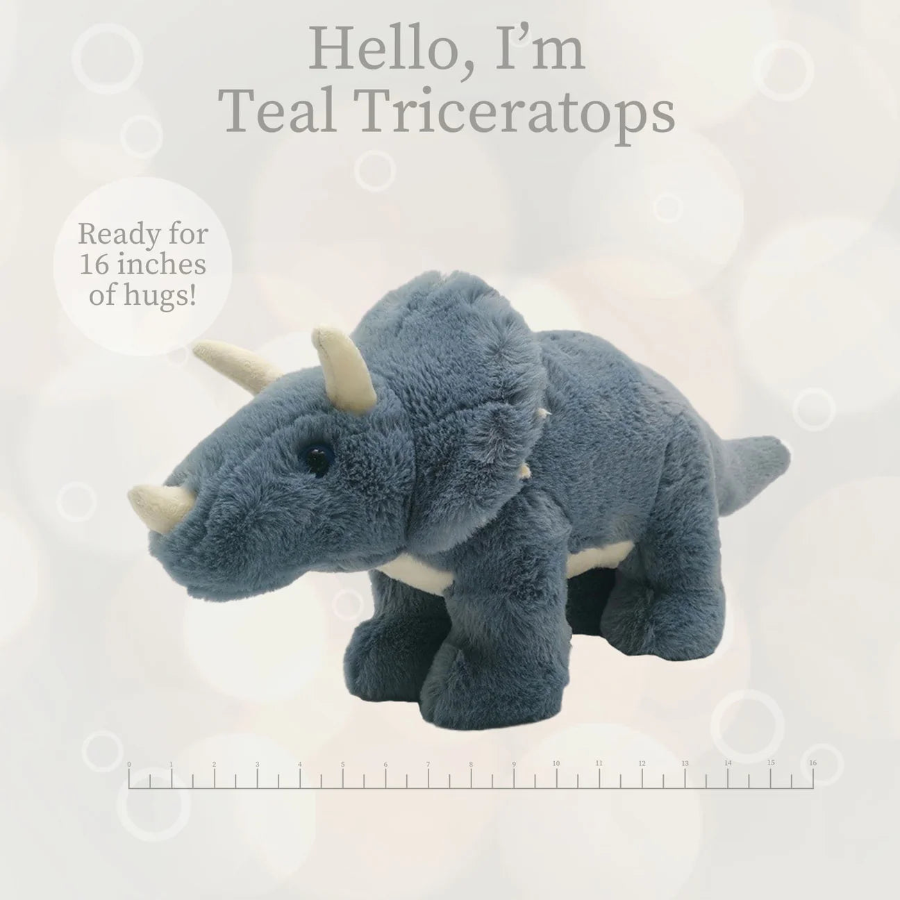 TEAL TRICERATOPS DINOSAUR is a snuggly, cuddly and softy plushie companion.Blissfully lush & loppy & floppy & squishy ready for millions of hugs and memories