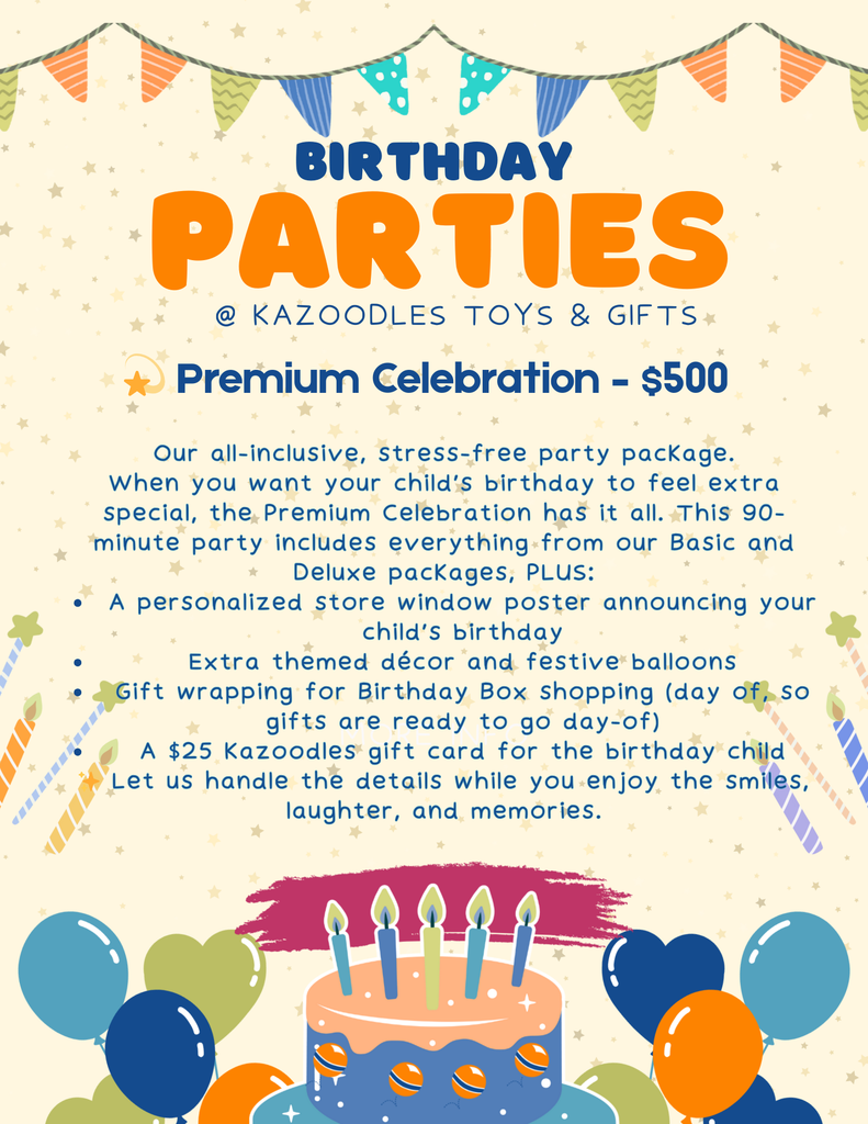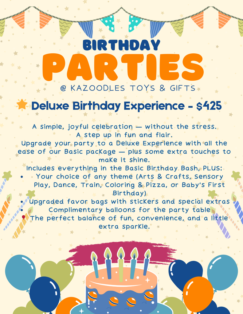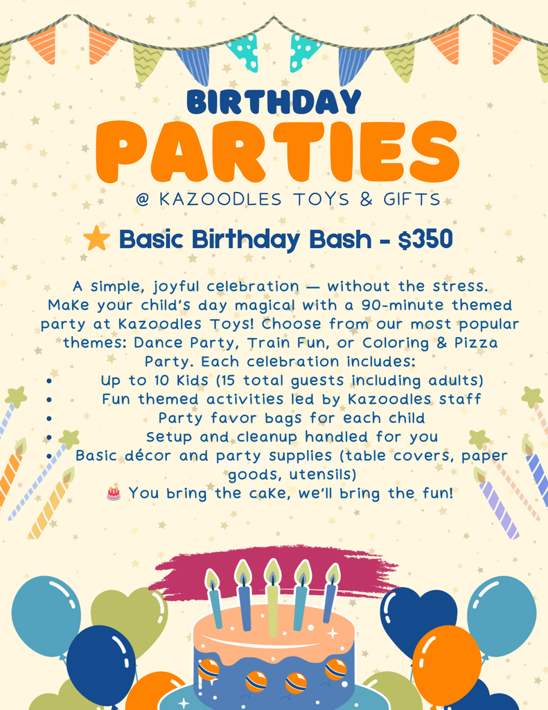 Want to celebrate your child’s special day with us? 🎉 We make birthdays easy and unforgettable! To learn more about our party packages, what’s included, and how to reserve your date, visit our Parties page on our website or stop by the store and ask a team member. You can also give us a call — we’re happy to answer questions and help you find the perfect option for your celebration.