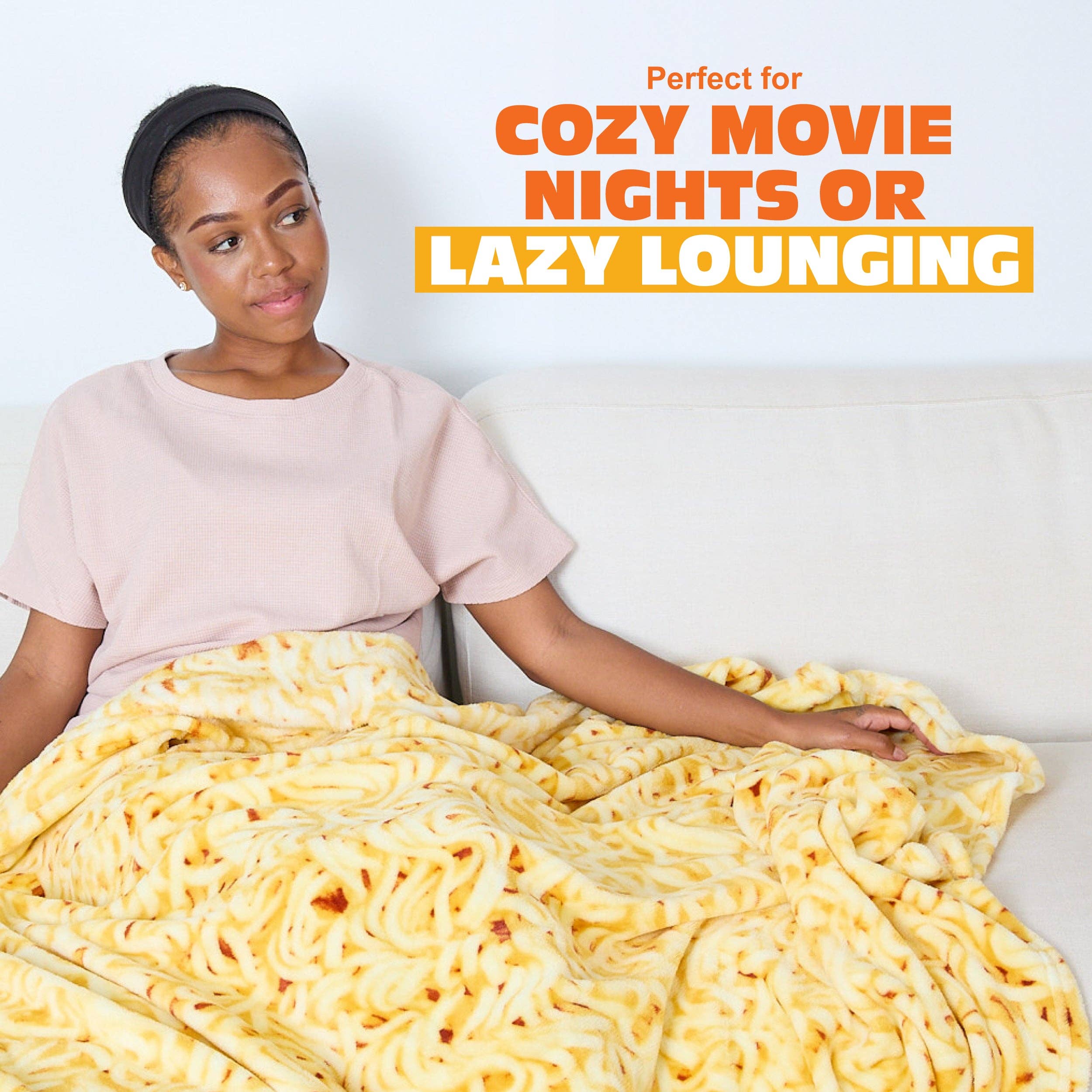 Realistic Ramen Design! Transform yourself into a steaming bowl of ramen noodles! Inspired by the viral trend, this realistic looking ramen blanket lets you wrap yourself or your pets up in coziness.