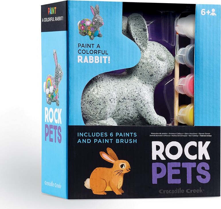 Attention all aspiring artists! Get ready to embark on a creative adventure with our captivating Little Rabbit Rock Pet Painting Set. It's not just any ordinary painting experience—it's a chance to transform a rabbit into a 3-D masterpiece of your very own! Each set includes a kid-safe resin animal and a set of six vibrant non-toxic weather proof paints, everything you need to make a masterpiece.