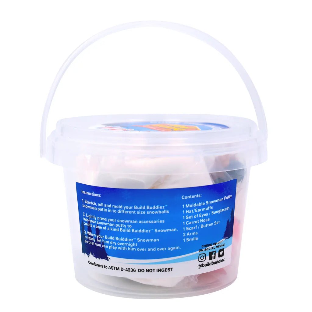 Are you ready to build, play and display? With the Build Buddie Moldable Putty Craft Kits, kids can mold, shape and build their very own pocket-sized Snowmen! Each tub comes with soft, moldable putty as well as all the accessories to decorate and customize your creations. Encouraging the development of motor skills, hands-on learning and creativity, Build Buddiez are the perfect craft for imaginative fun! Ages 5+