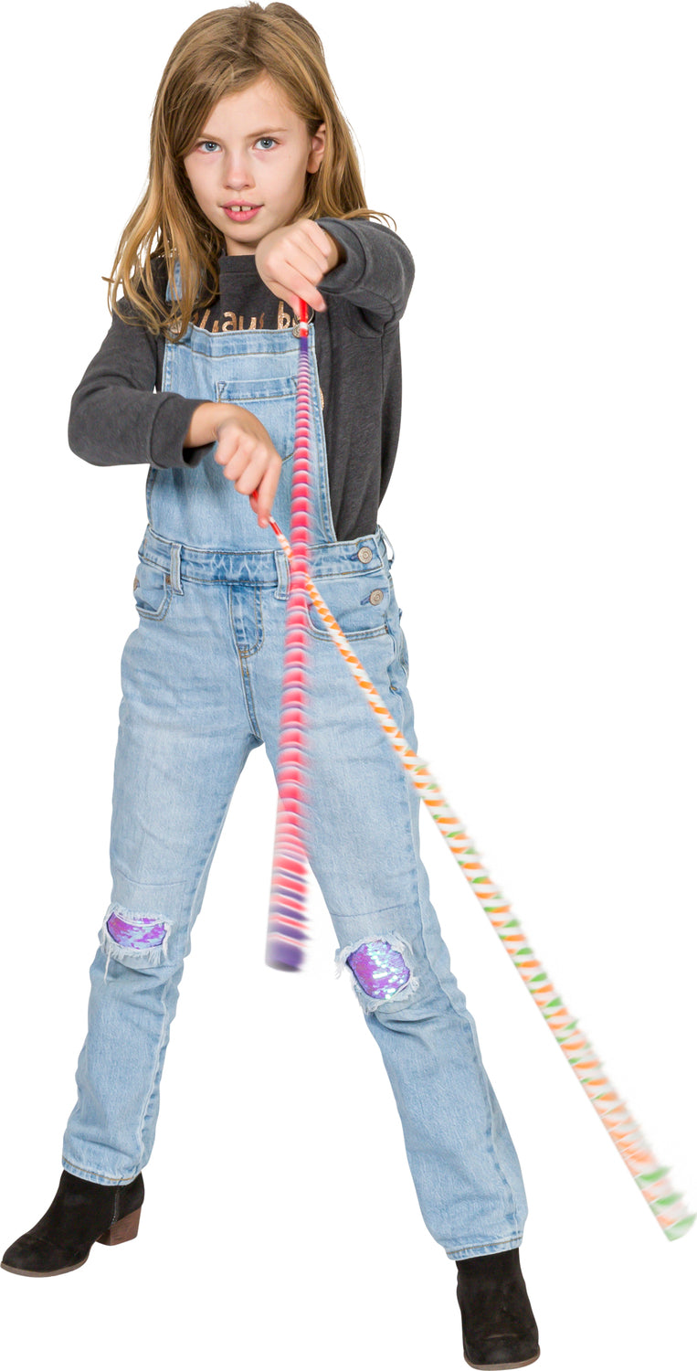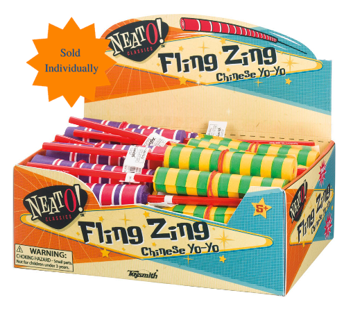 Add a burst of color and motion to playtime with the Neato! Fling Zing Paper Yo-Yo. This lightweight, skill-based toy features a 9-foot roll of vibrant paper wound around a sturdy 7-inch red plastic stick. With just a flick of the wrist, the paper streamer extends and rewinds in one smooth, satisfying motion—perfect for tricks, laughs, and endless kinetic fun.