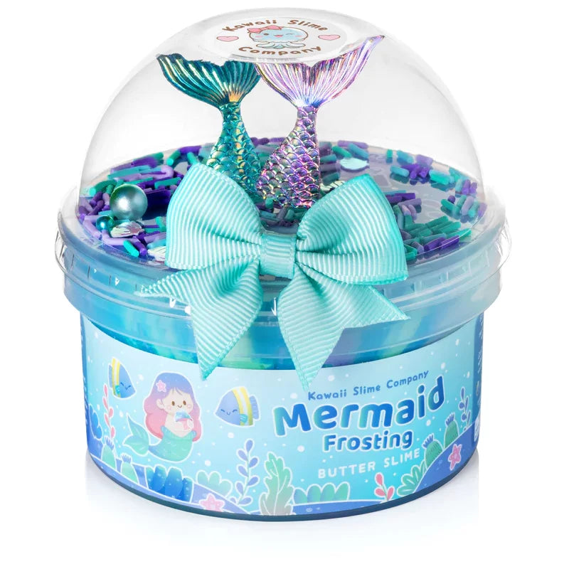 Make your aquatic dreams come true with Mermaid Frosting Butter Slime! Squish and swirl this deliciously scented key lime pie slime, complete with magical mermaid toppings! Transform your plavtime into an under-the-sea adventure!