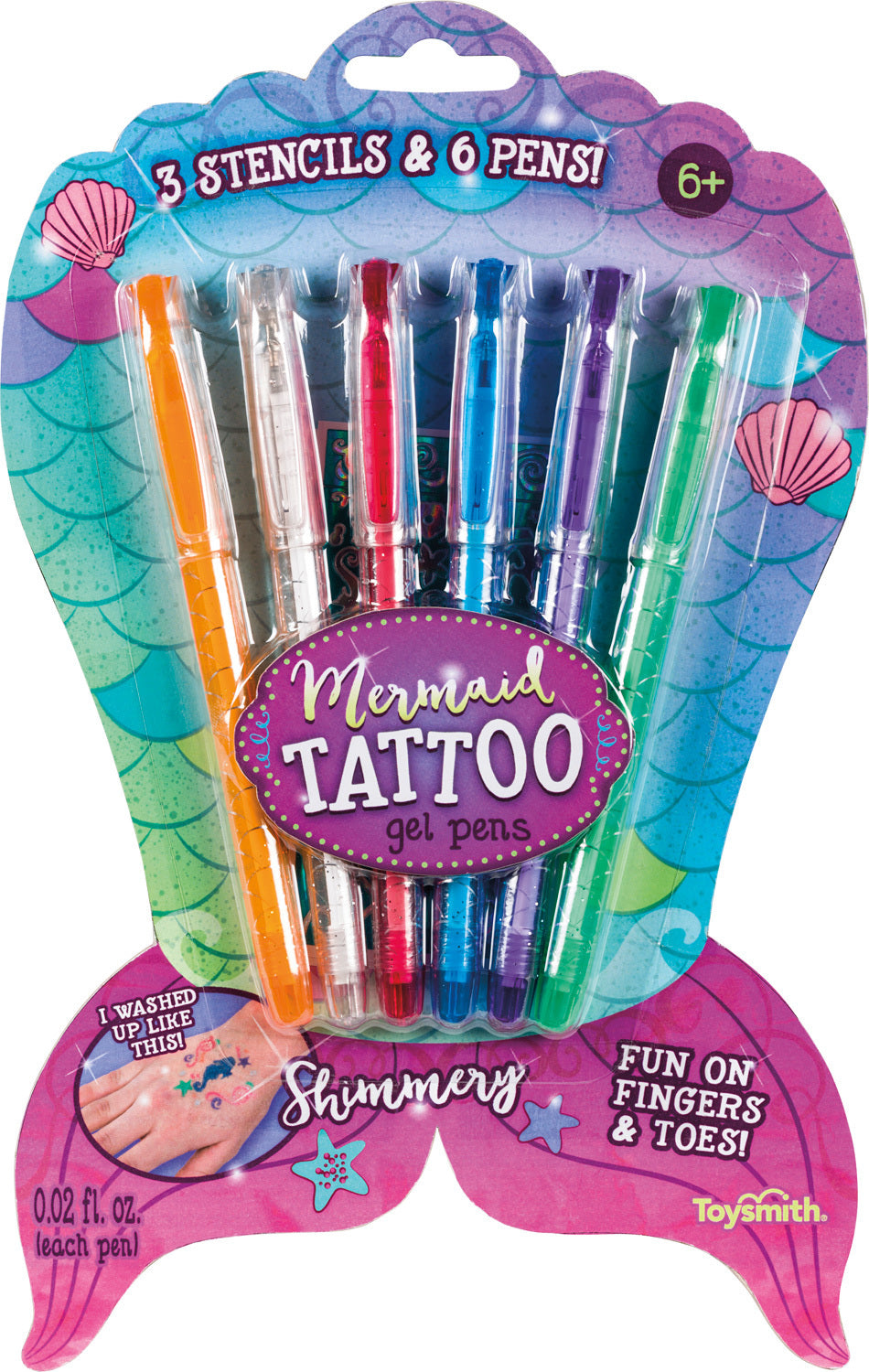 Toysmith Mermaid Temporary Ink Tattoo Pens — 6 Glitter Gel Pens (0.02 fl oz each)