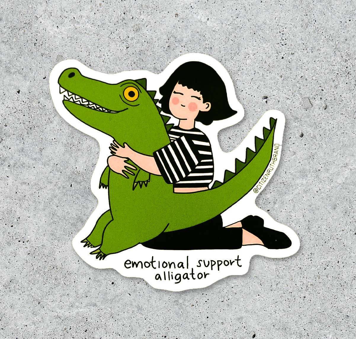 As a native Floridian, I've always been obsessed with Alligators. They scare me and yet fascinate me. Lately, I've been entranced by the videos of the adorable alligators that were raised by humans. It made me think, how funny and sweet, so here you go, emotional support alligator. :) Add this sticker to your sports water bottle, Stanley cup or tumbler of choice!