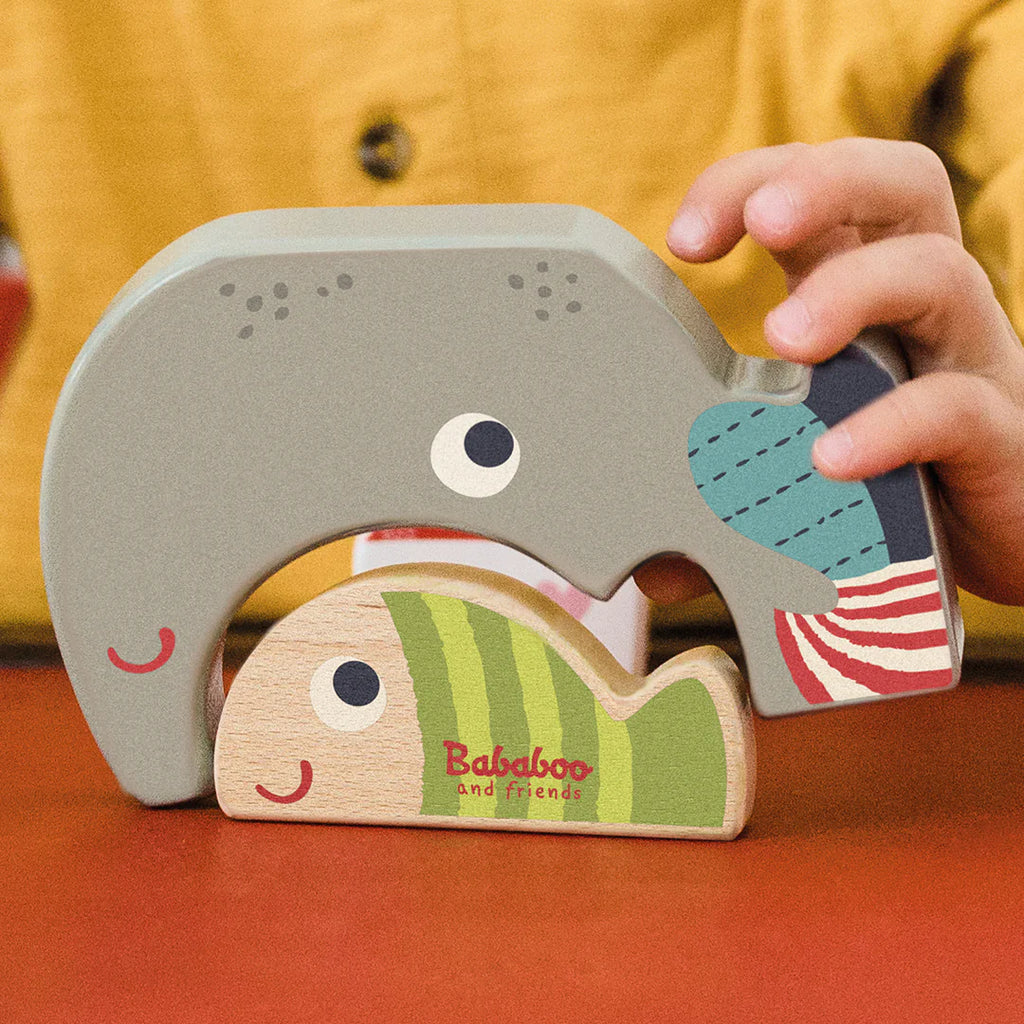 After an accident, Whale Wilma can't swim very well any more. She loses her hat in the water and – oh no! – she can't catch up with it. A tiny helpful fish helps her retrieve the hat. In the 5-piece Happy Wilma puzzle game, you'll find two different types of waves – Whale Wilma, the helpful fish and Wilma's funny house-shaped hat have to be arranged correctly, training fine motor skills, hand-eye coordination, logical thinking and creativity through play. Suitable for children aged 18 months and up, this puzzle can be completed both vertically and horizontally, depending on your child's current stage of development and daring.