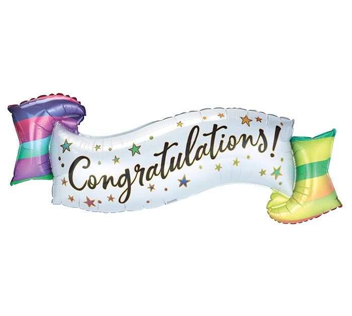 Make celebrations unforgettable with the 40" Congratulations Banner Balloon! Its large size and playful design create a festive vibe that’s perfect for honoring achievements and spreading joy. Easy to display, it’s the ultimate way to say “Congrats” with style and fun.