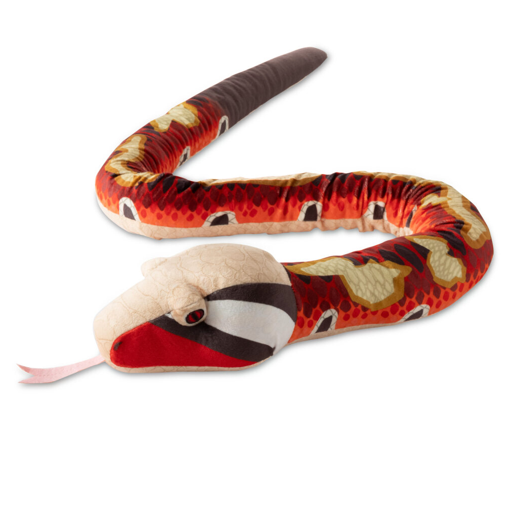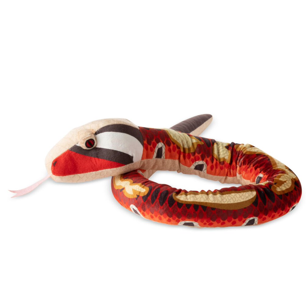 Introducing the Earth Keeperz Blood Python Snake, a 54" plush toy by The Petting Zoo. This snake is not only a great companion for kids and babies, but also a champion for the environment. Made from an average of 17 recycled plastic water bottles, this plush toy is a part of our commitment to preserving the world we share. With its soft recycled fabrics, it offers a tactile experience that's both enjoyable and comforting. It's a part of our high-quality and innovative plush product range.