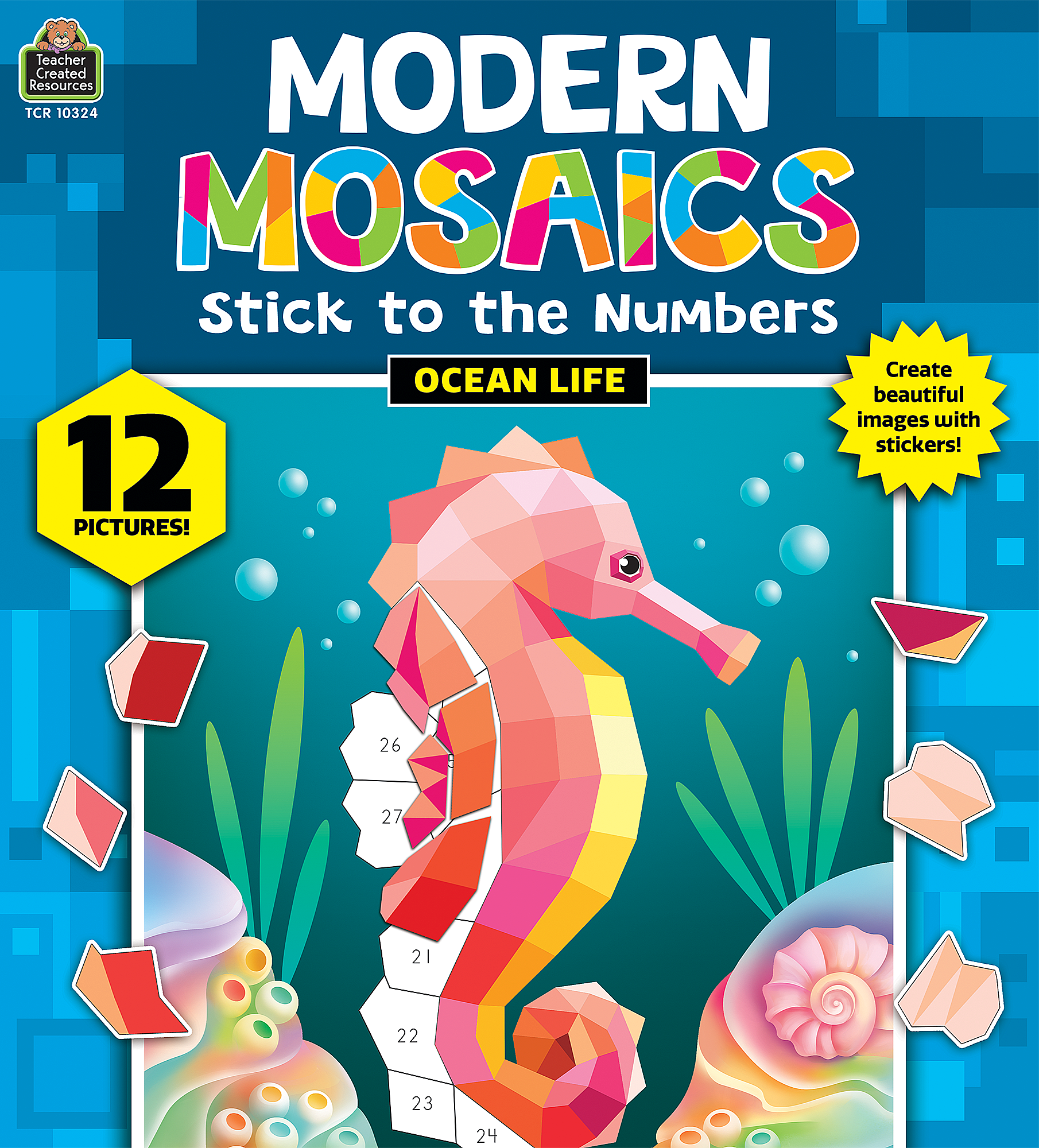 Modern Mosaics give students the opportunity to create their own art in three easy steps. Find, peel, then place the stickers on the image sheet to reveal their masterpiece. Activate focus and patience to complete these sticker puzzles that are both challenging and calming. Each page is perforated for easy tear-out and features 12 different pictures.