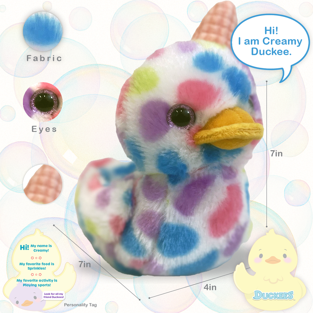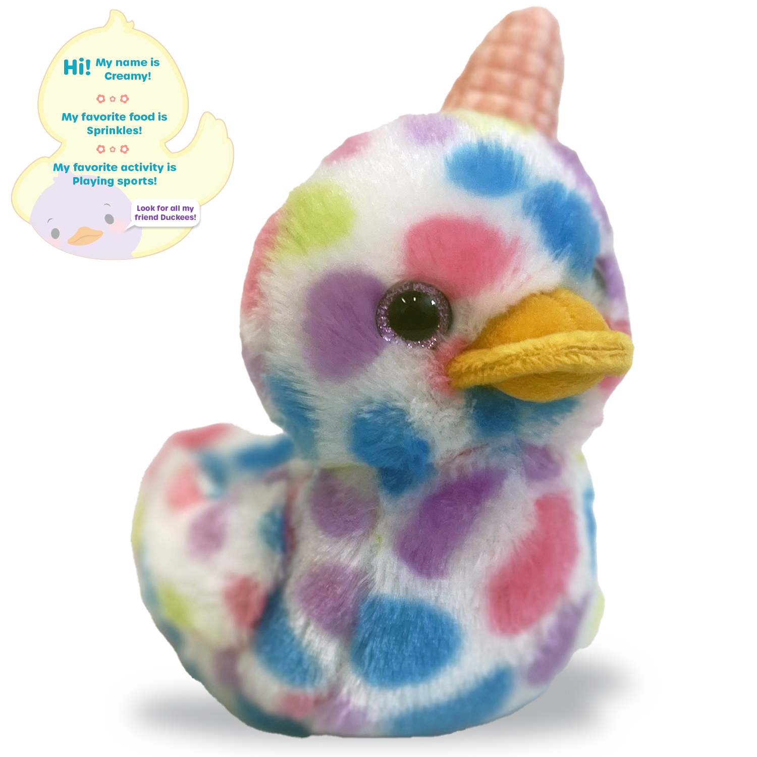 Meet Creamy, the sporty Duckee Ice Cream who loves sprinkles and playing games! This 7" plush pal is delightfully soft, squishy, and ready for endless fun. Designed in the USA and crafted with care, Creamy brings color, comfort, and sweetness to every hug. Includes 1 piece: 7" Creamy Plush Duckee Ice Cream. ✨ Hi, my name is Creamy! My favorite food is sprinkles and I love playing sports!
