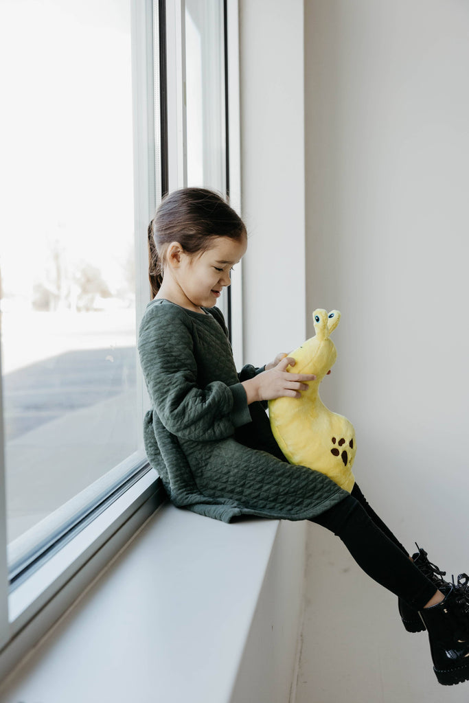 • Hand-drawn design, created with love in the USA Filled with eco-friendly stuffing made from recycled water bottles Crafted with durable stitching and soft, squishy fabric for hours of fun Slow, squishy, and full of charm—this Banana Slug is ready to make your day a little brighter!