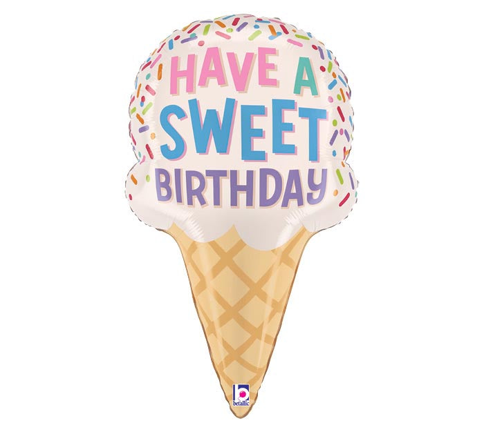 Scoop up some birthday excitement with this delicious 28" Sweet Birthday Ice Cream Cone balloon! This mouthwatering foil balloon brings a sprinkle of fun to any celebration with its colorful, oversized ice cream design. Perfect for summer parties, sweet-themed celebrations, or anyone with a taste for fun! Watch eyes widen with delight when this no-melt treat floats into the room – it's the cherry on top of any birthday bash!