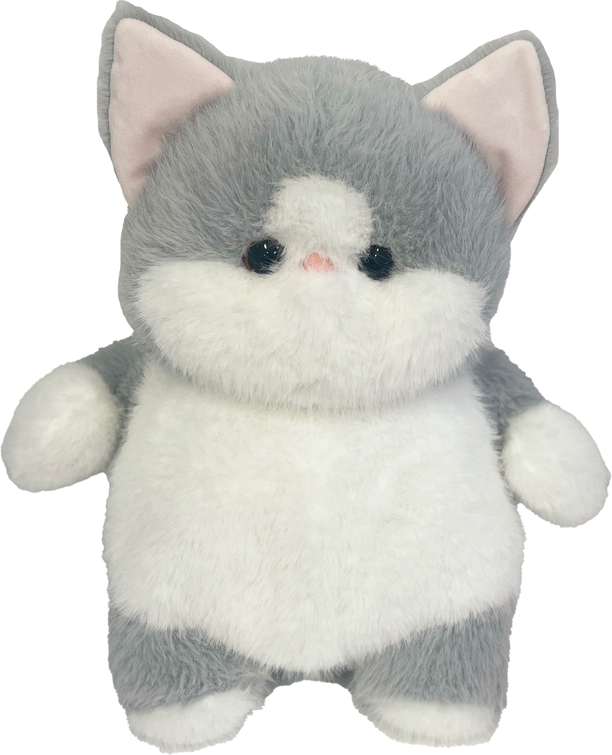 Collect all 4 styles of Chubby Chunka Dunkas from BHTB Plushies. Dimensions: 13"H (Approx. 12"W x 10"L x 13"H) Delight cat lovers with this adorably plump kitten plush featuring signature chunky design and sweet grey-and-white coloring.