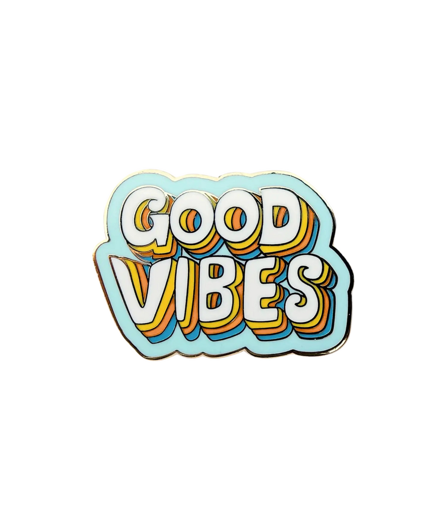 Colorful good vibes pin *1.25" wide x .9" tall, hard enamel with gold plating. *Two back posts with black rubber backing.