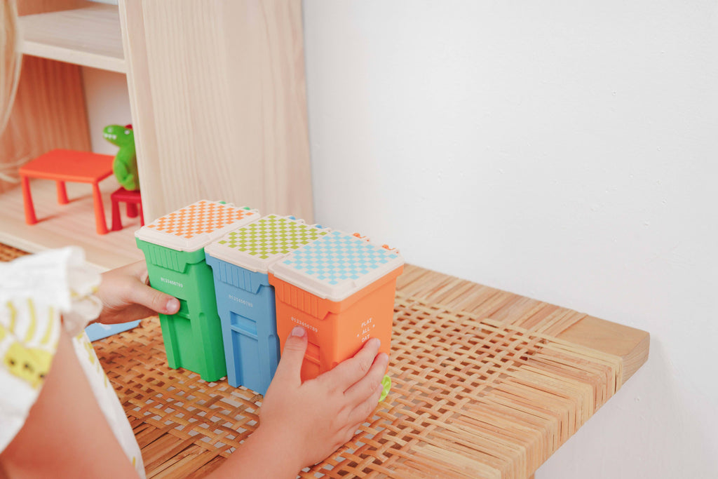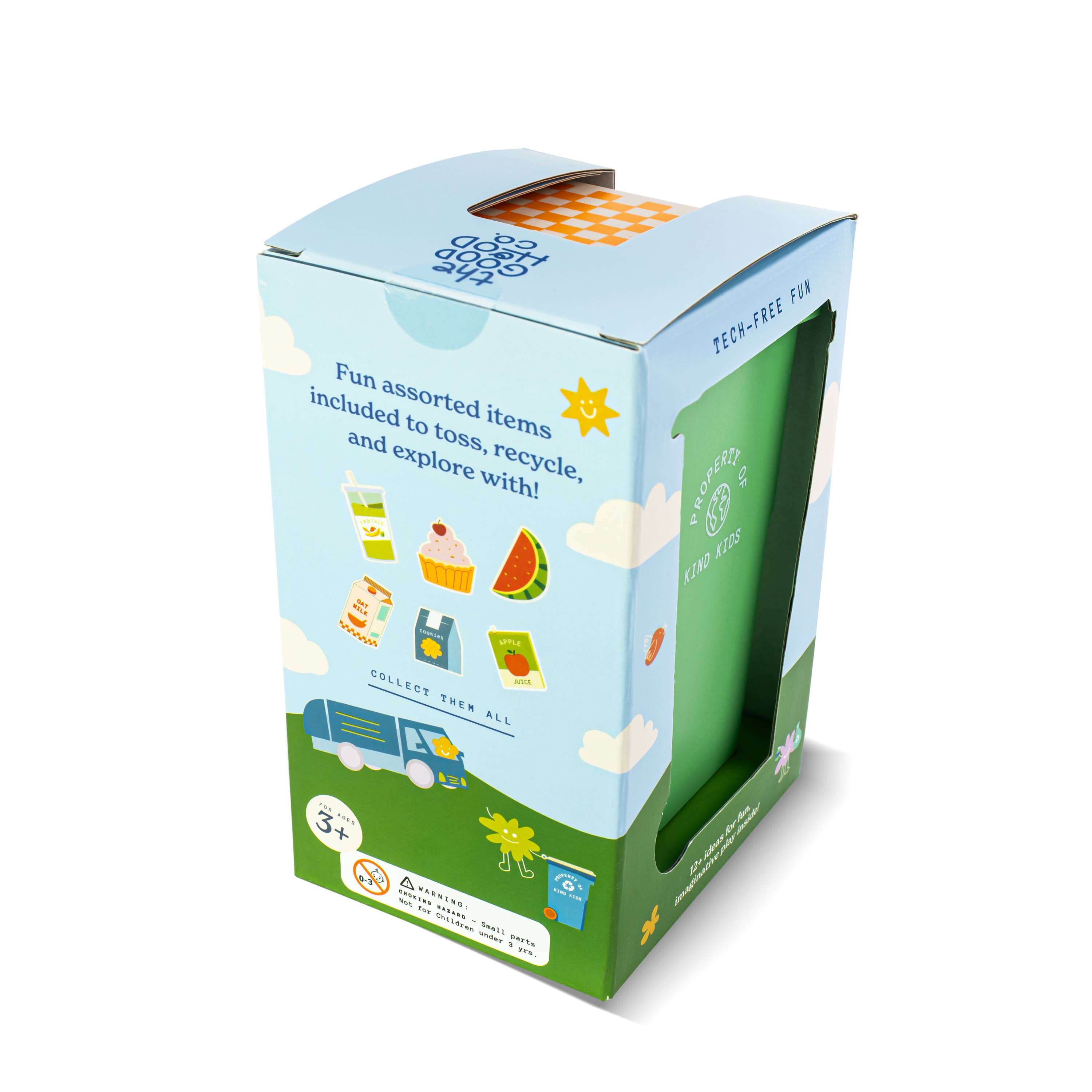 Inspired by every kid’s favorite truck, our Toy Trash Cans come in four bold colors and are built to fuel endless adventures. Each trash can comes with six cardboard trash pieces. Whether they're used to sort toys, store treasures, or act as the star of a pretend city cleanup, these cans turn cleanup time into playtime. Made with food-grade materials, they’re safe, durable, and delightfully kid-approved. - Trash can - Six cardboard pieces of trash - Box - BPA FREE - PVC FREE - PHTHALATES FREE - LEAD FREE - LATEX FREE - Made with food-grade materials