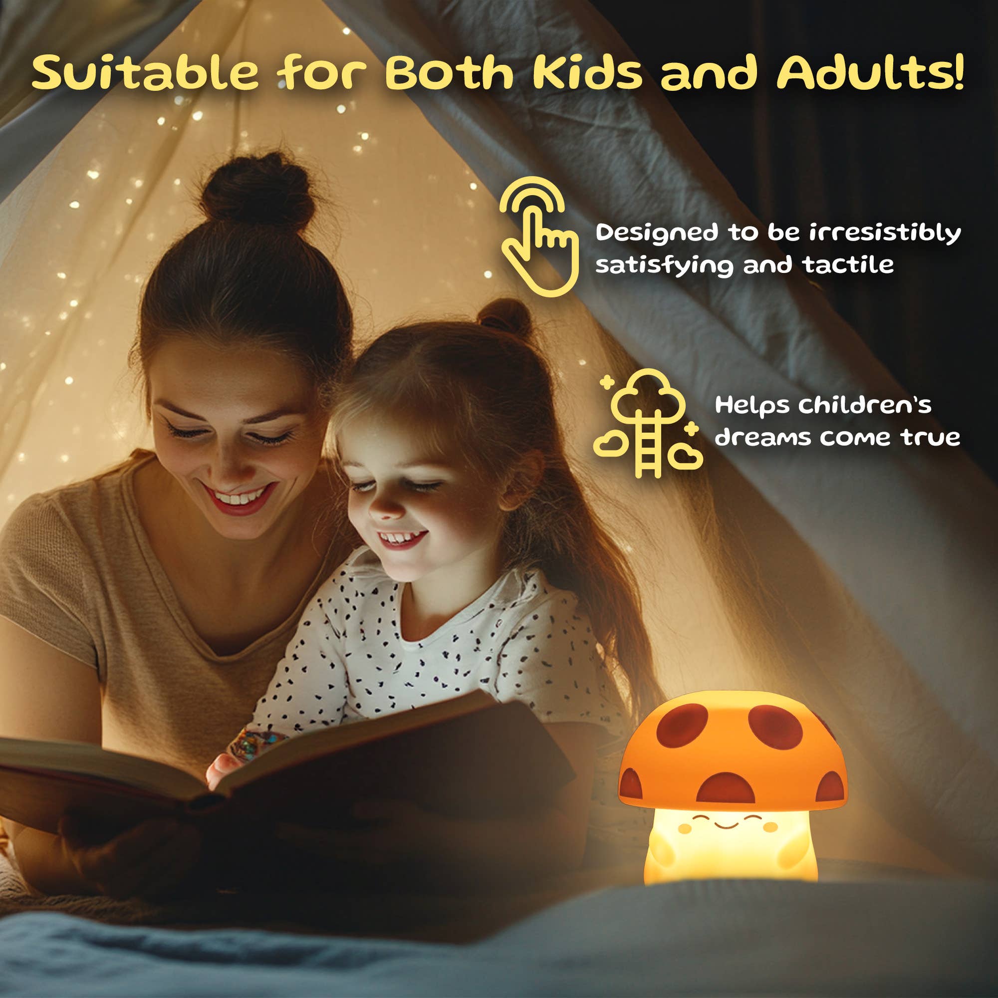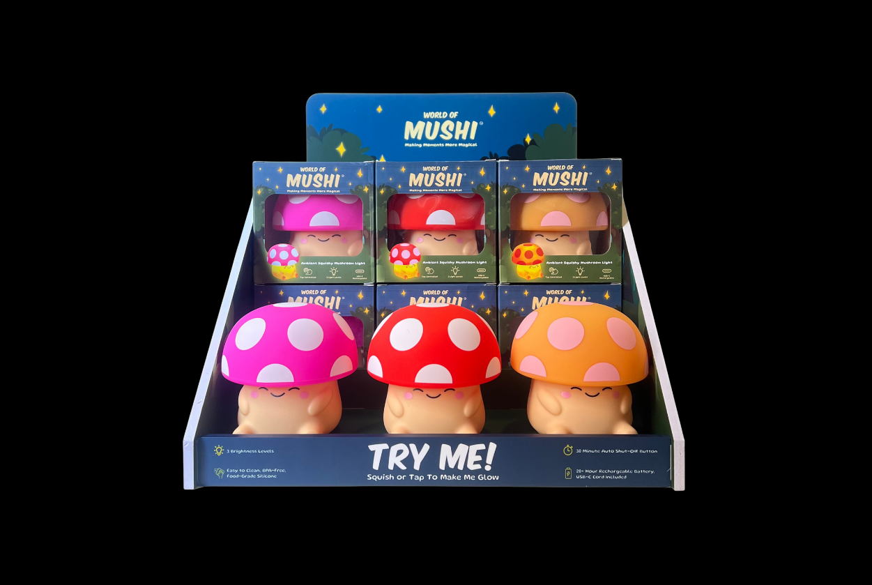 Designed for lovers of cute mushroom decor and kawaii room accessories, Mushi creates a calming atmosphere for babies, toddlers, teens, and adults alike.