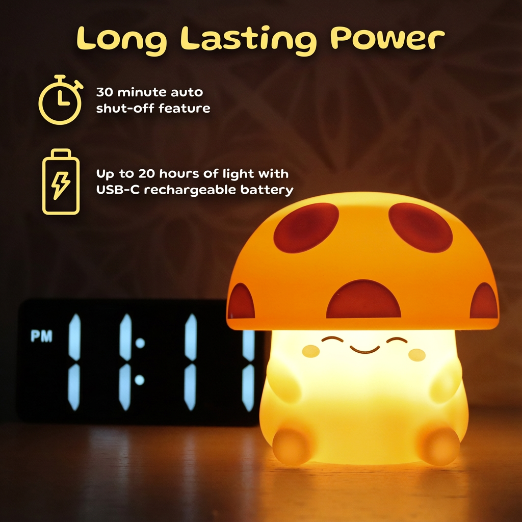 ✨ 🍄 USB-C Rechargeable Power: Enjoy up to 30 hours of continuous warm light on a single charge with the included USB-C cable.