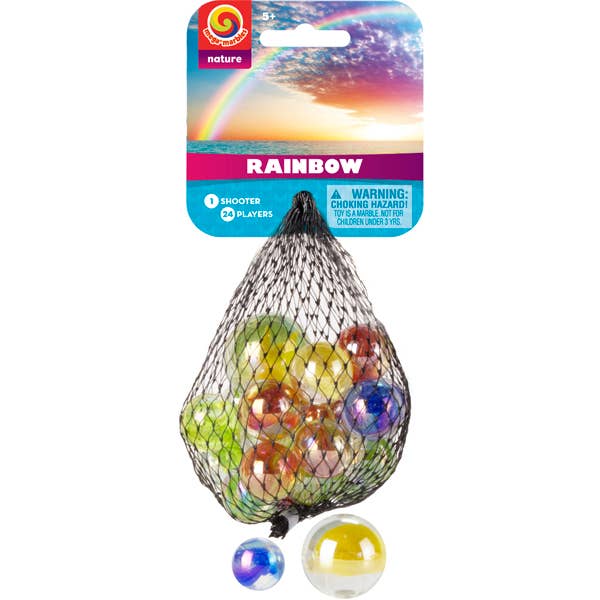 Each net bag includes fun facts, game rules, one shooter sized marble (25mm) and 24 player sized marbles (16mm).