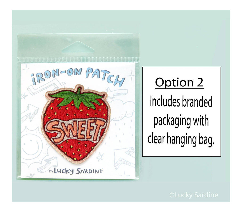 Sweet strawberry, embroidered patch with an iron-on backing.