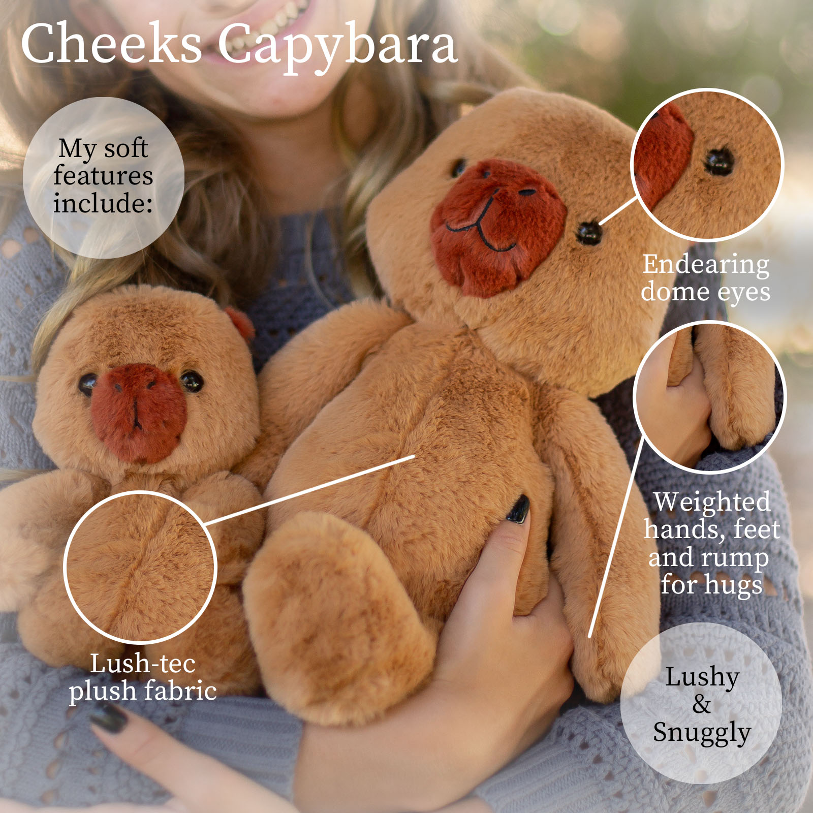 Meet the World's Softest Lushees 16 inch Cheeks Capybara Plushie, including 1 cuddly and irresistibly soft capybara plush perfect for snuggling. This 16 inch plush features a lovable Cheeks Capybara design that toddlers, kids, and plush collectors will adore. Its cozy design and generous size make it ideal for bedtime hugs, playtime adventures, or as a charming addition to any nursery or room décor. Parents appreciate the child safe quality and durable construction for long-lasting cuddles.