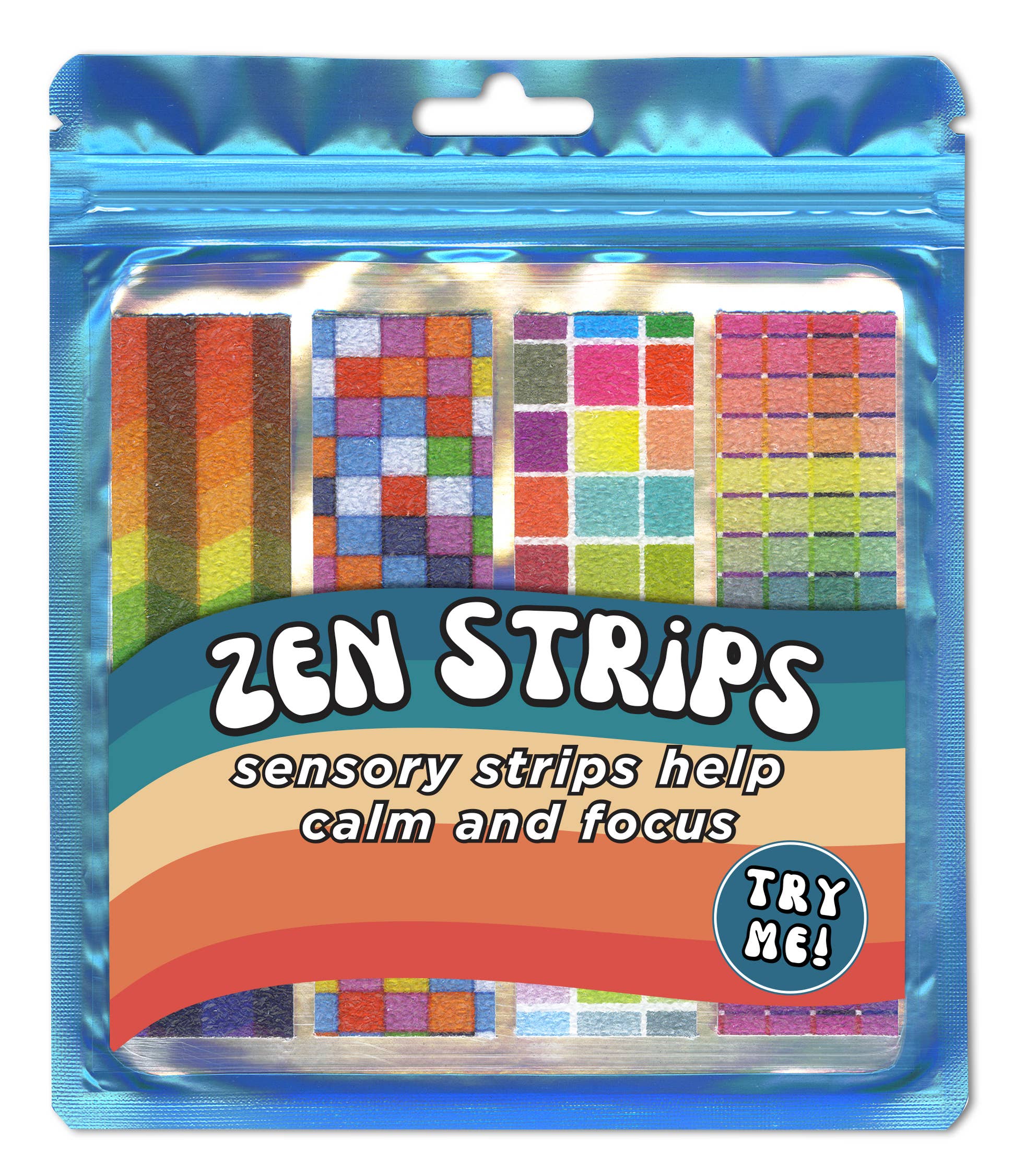 Sensory strips help calm and focus! Simply touch, swipe, scratch, or fidget with Zen Strips to manage stress, boost concentration, and enjoy a calming effect. Peel & Stick to phones, game controllers, water bottles and more! Improves focus by providing tactile sensations while fidgeting.